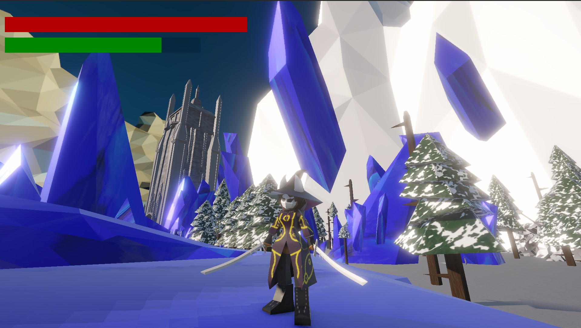 Jeu de tag réalisé en équipe de deux en une semaine, avec le thème « Suivre les traces » et la contrainte multi-utilisateur asynchrone. Chaque joueur joue à son tour : les zombies doivent trouver le survivant et le survivant doit fuir. La seule façon de repérer l'autre joueur est grâce à ses traces. Pour ce projet, j'ai exploré des styles de texturation pixelisés et des shaders cartoon. Mon mandat portait sur la direction artistique et le level design.
